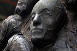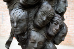 2013Ontmoetingen tijdens reizen. Als schimmen verdwijnen ze als bagage in je "rugzak" voor de reis door je leven. De rugzak is gemaakt van linnen en de gezichten zijn gemaakt van leer.